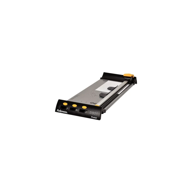 Το Fellowes Proton A3 5410301 είναι ο ιδανικός σύμμαχος για γραφεία που χρειάζονται συχνές, ακριβείς κοπές σε χαρτί, φωτογραφίες και πλαστικοποιημένα έγγραφα. Με μεταλλική βάση αλουμινίου, τεχνολογία SafeCut™ και ενσωματωμένο χώρο αποθήκευσης λεπίδων, ο Proton A3 προσφέρει επαγγελματικά αποτελέσματα σε κάθε χρήση.