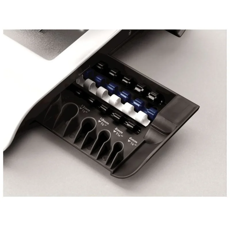 • Ενσωματωμένος οδηγός μέτρησης για σωστή επιλογή σπιράλ και άψογο αποτέλεσμα
